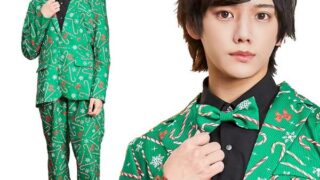 クリスマスパーティーで何を着るか迷ったとき、場の空気を一気に明るくしてくれるのが柄物スーツ。中でもキャンディケイン柄を全面にあしらったデザインは、写真映えと盛り上げ力の両立が叶う一着。きちんと感のあるスーツシルエットに、遊び心のある柄が加わることで、堅くなりすぎず、ふざけすぎない絶妙なバランスに仕上がる。